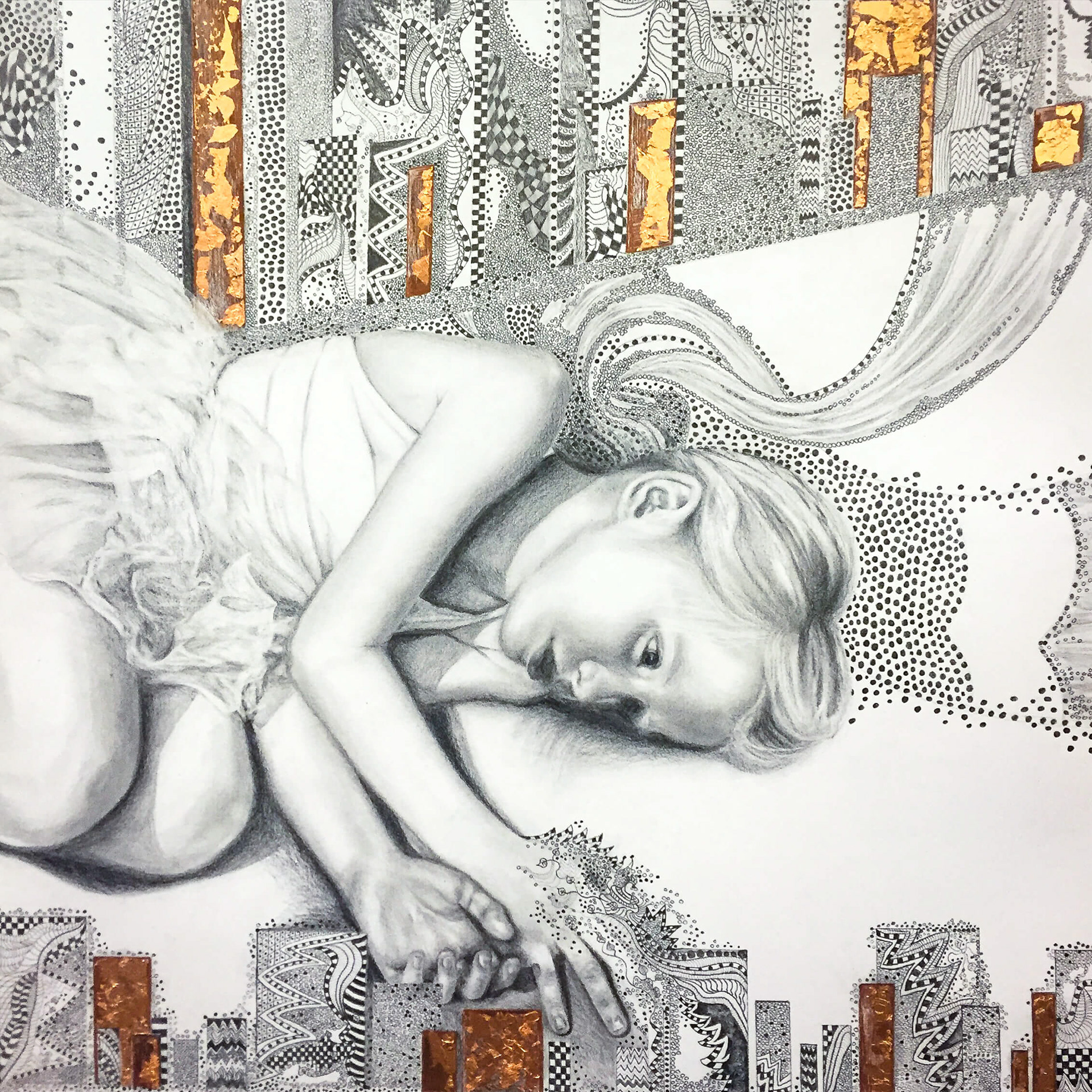 Tittel: "Context". Teknikk: Blyant, slagmetall. Mål med ramme: Originaltegning ca. 90 cm x 90 cm. Print ca. 60 cm x 60 cm