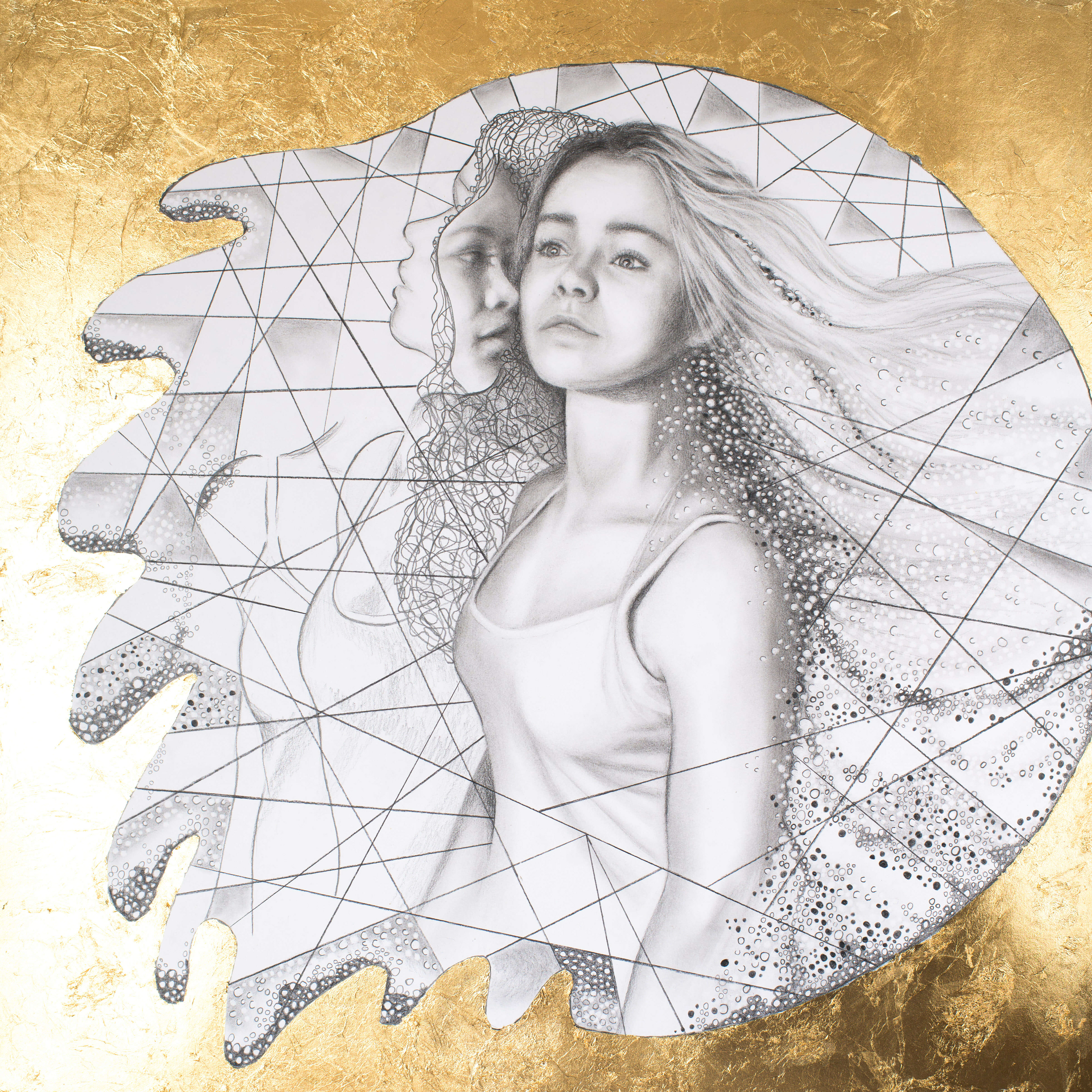 Tittel: "Motlys". Teknikk: Blyant, kull og slagmetall. Mål: Originaltegning 70 cm x 70 cm. Print 40 x 40 cm.