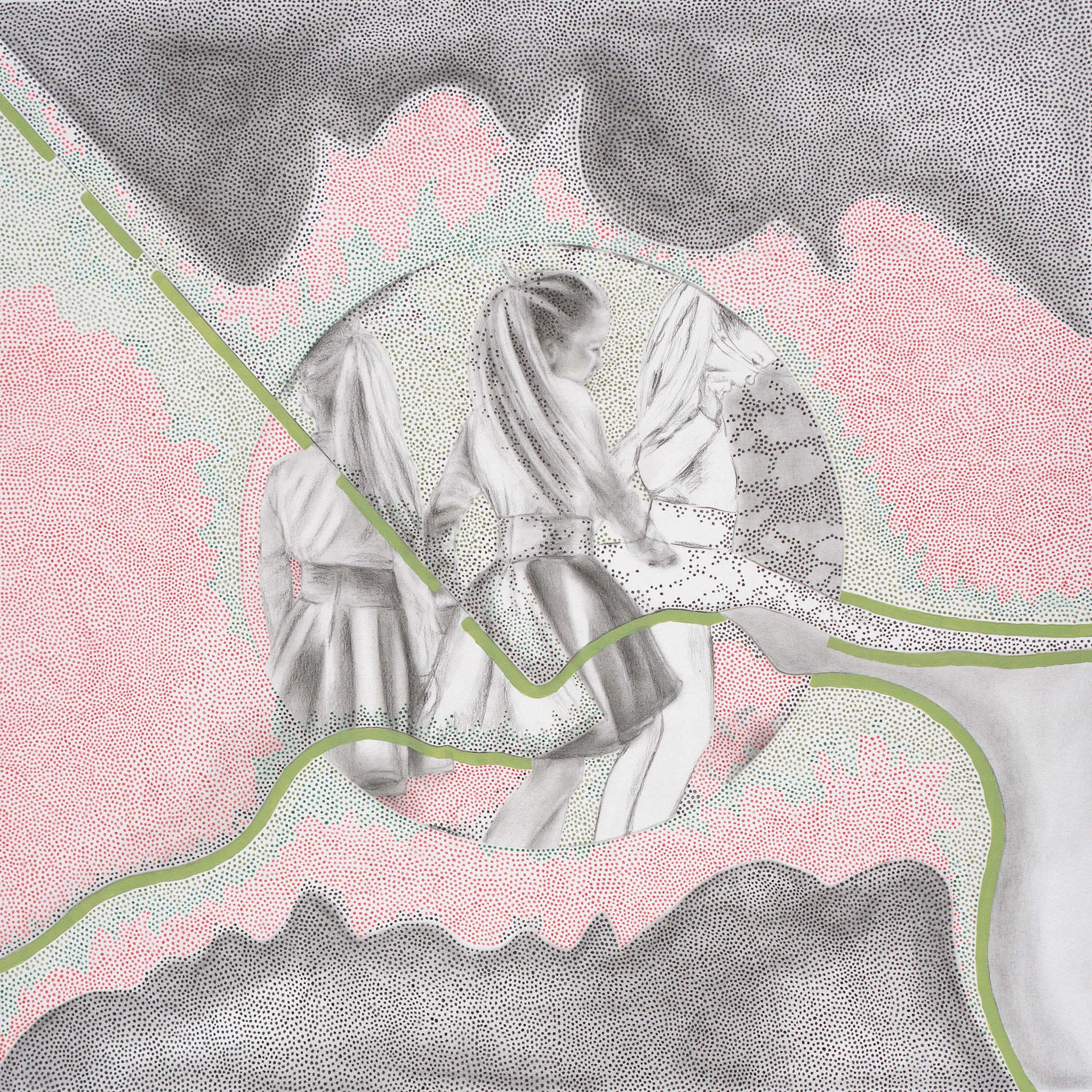 Tittel: "patience"/"tålmodighet". Teknikk: Blyant, kull, akrylmaling. Mål med ramme: Originaltegning ca 90 cm x 90 cm. Print ca 60 cm x 60 cm.